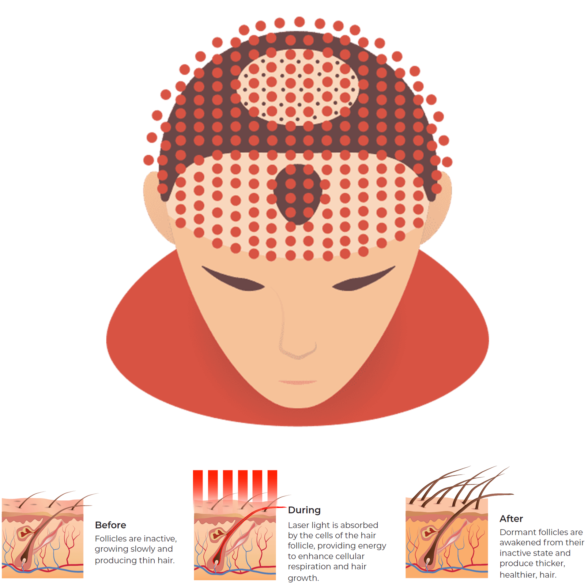 Als erste Technologie ihrer Art hat LaserCap die Verabreichung einer  Lasertherapie für das Nachwachsen von Haaren perfektioniert. LaserCap ist eine leichte und flexible Kappe, die mit echten Laserdioden ausgekleidet ist und die Haarfollikel mit monochromatischem rotem Laserlicht in fein abgestimmter Wellenlänge und Intensität bestrahlt.